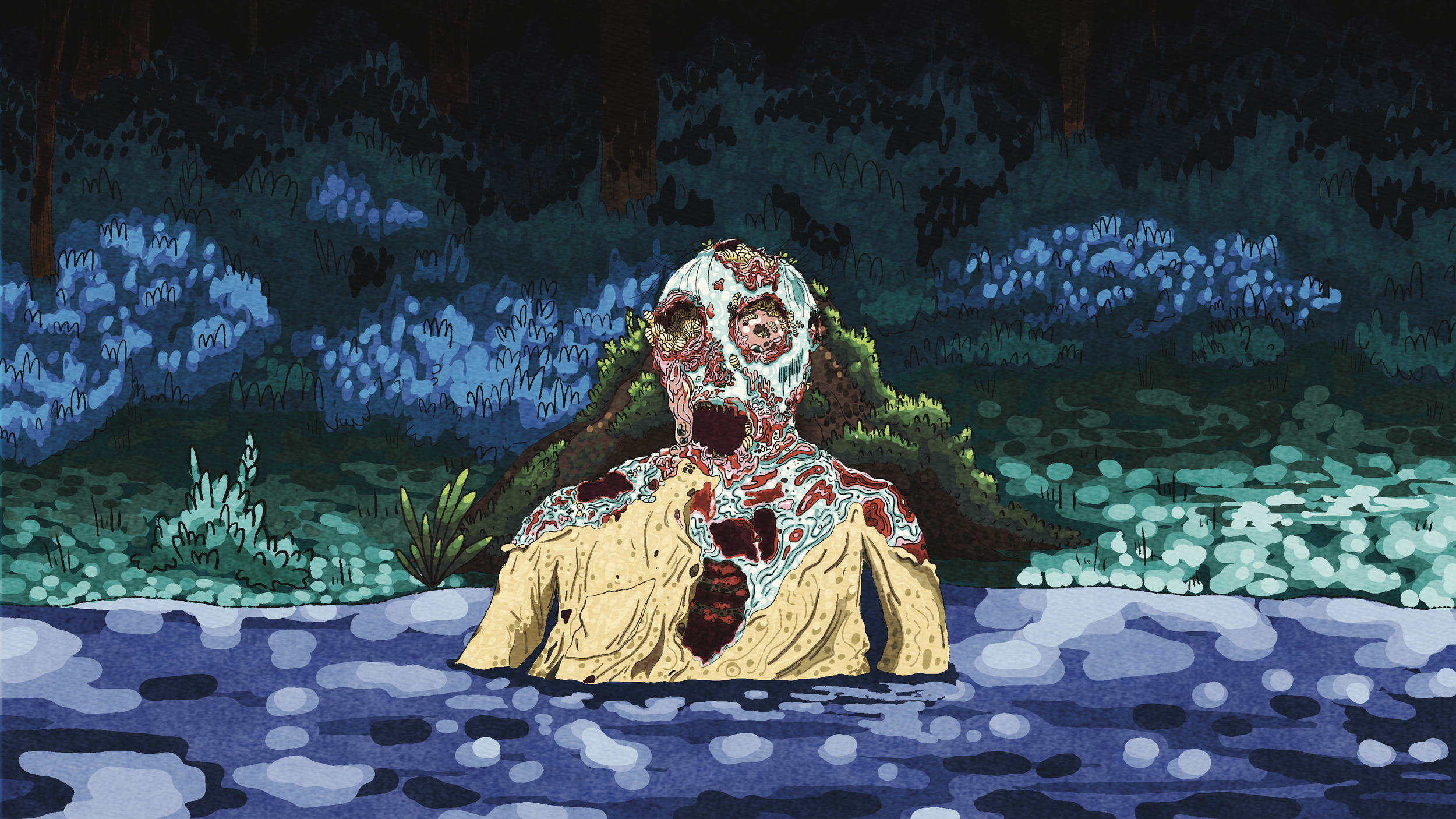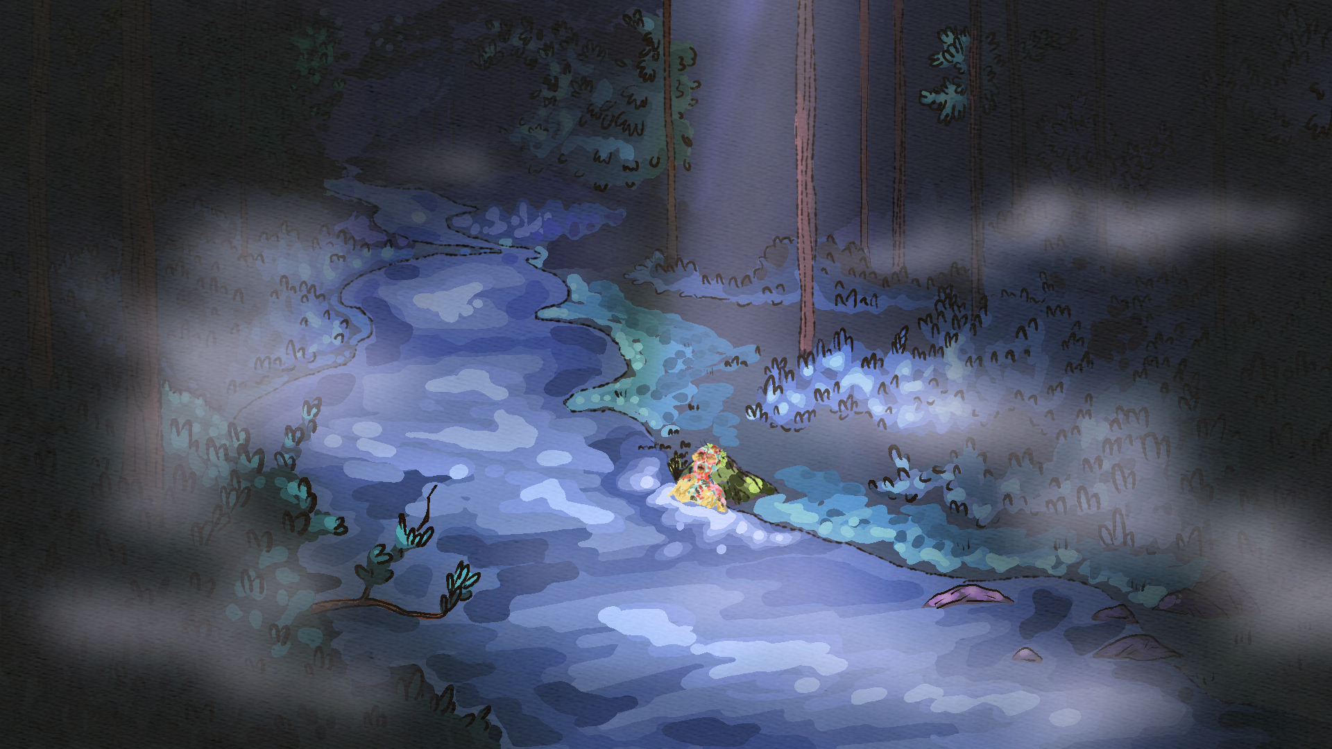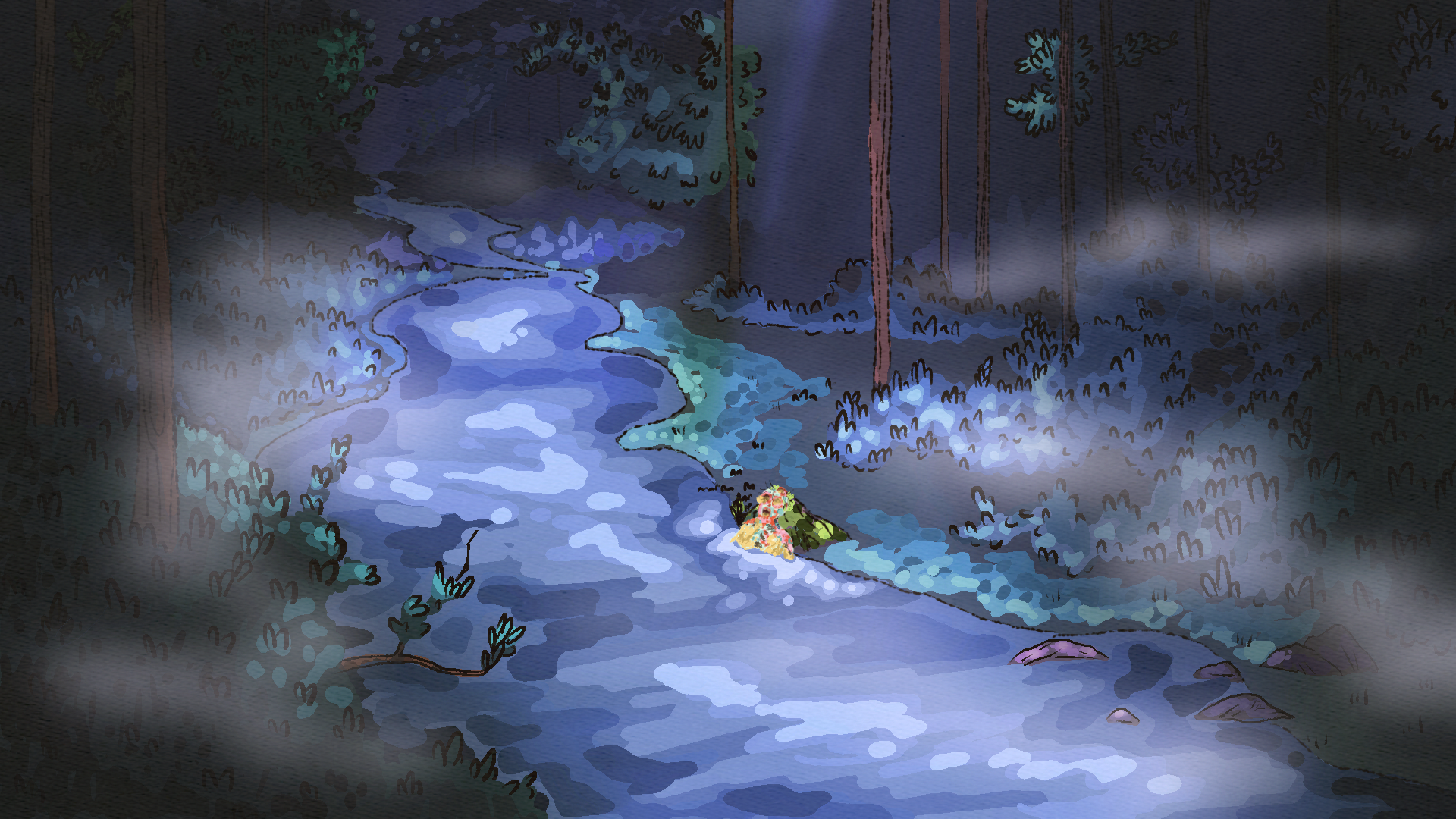 "Deep in the forest, a rotting corpse by the river is being eaten by maggots. An Eurasian Magpie who passed by arrived and started eating the maggots. She soon slowly develop feelings toward the dead body under the romantic moonlight and finally falls asleep next to moving maggots and her “lover”."